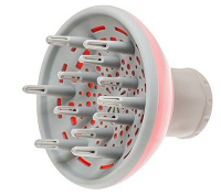 Диффузор универсальный средней глубины (12 высоких пальцев) к профессиональным фенам с длинным "стволом" и стандартным диаметром выходного отверстия до 50мм (для компактных моделей требуется примерка). Крепится на фен снаружи. Мягкое силиконовое кольцо прочно фиксирует диффузор, не царапая корпус фена. Диаметр диффузора 140мм.